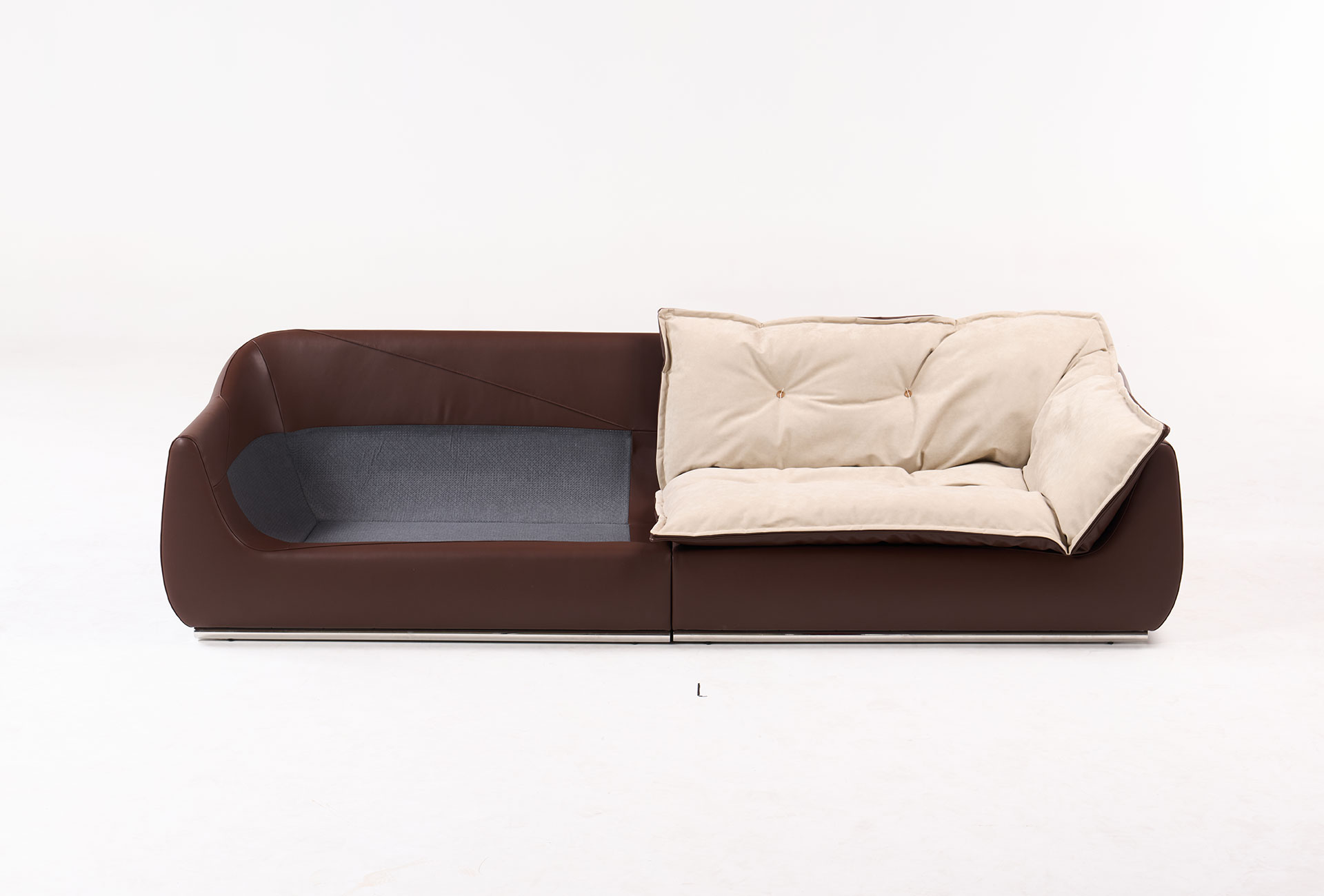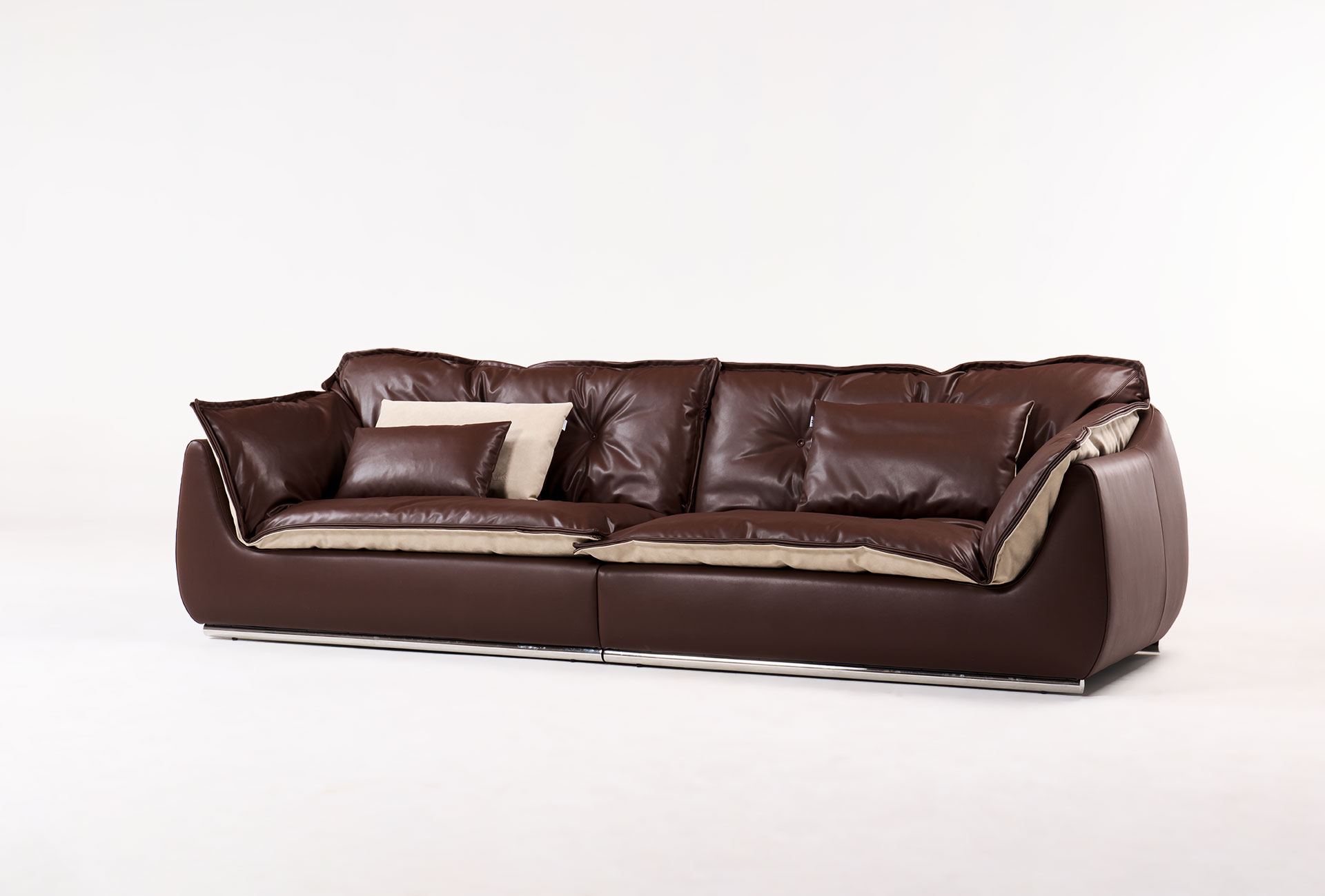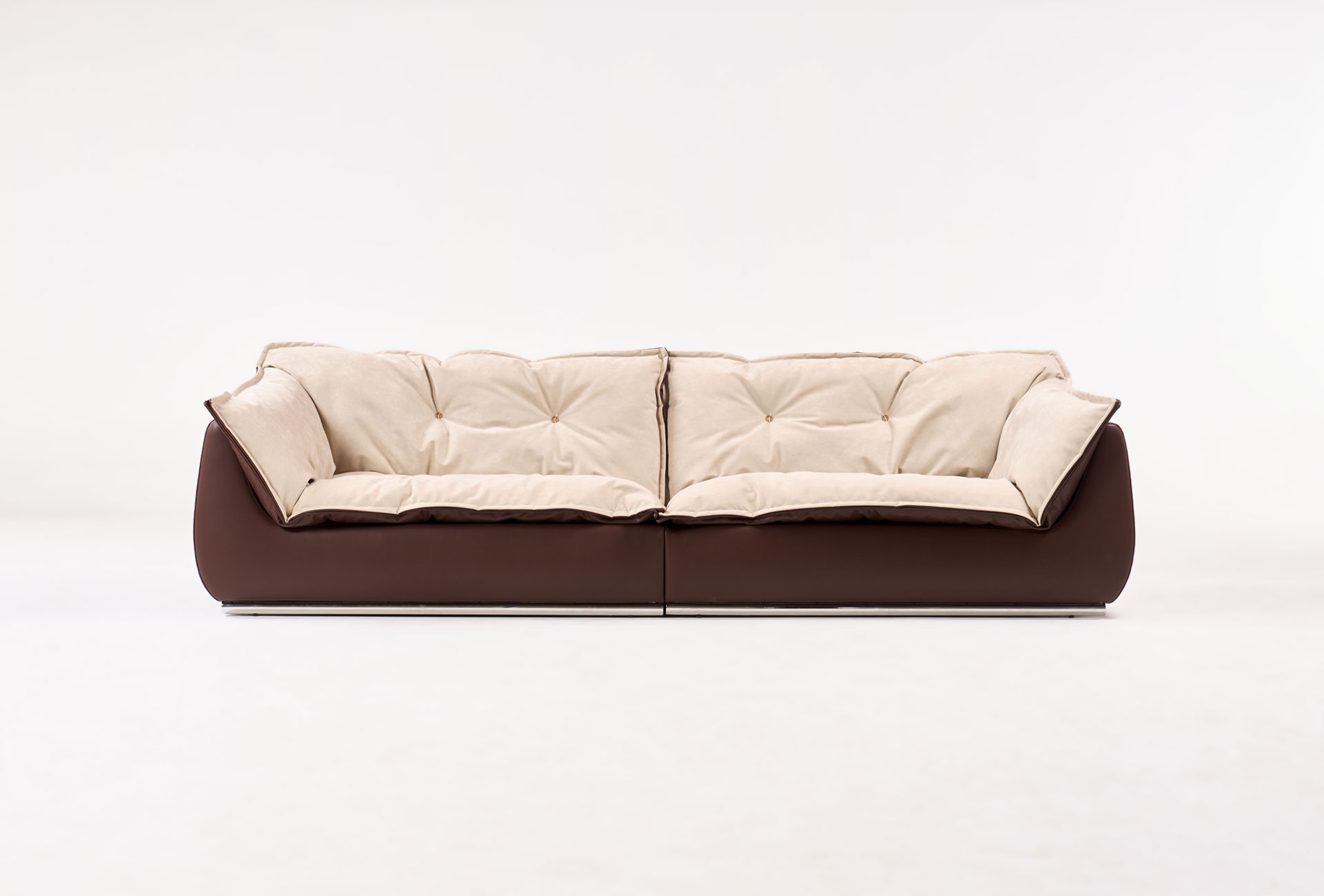 구름을 형상화한 듯한 풍성한 볼륨감과 이를 지탱하는 하이그로시 메탈 베이스의 조화는 마치 하나의 조각품을 보는 듯합니다. 몸이 닿는 곳은 한없이 부드럽게, 시각적으로는 날렵하고 모던하게. 디테일한 퀼팅 라인은 소파의 입체감을 살려주며 공간에 프리미엄한 깊이감을 더해줍니다.