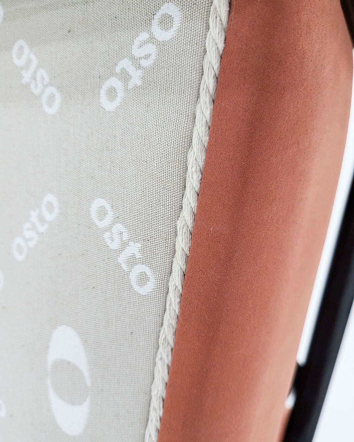 오스토는 숨겨진 가장 하단부까지도 프리미엄 섬유로 아름답게 마무리합니다. 오스토의 이름은 영속적인 미감과 품격을 담아 한 땀 한 땀 직공의 마음이 스며든 자수 로고로 새겨집니다. 흘러가는 세월 속에서도 변하지 않을 가치, 그것이 오스토가 지켜가는 신뢰의 상징입니다.