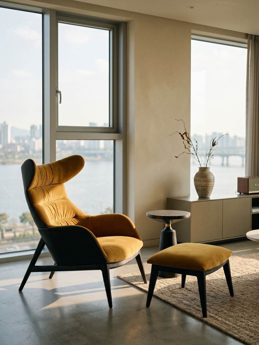 다양한 소재의 조합은 휴식용 체어를 넘어