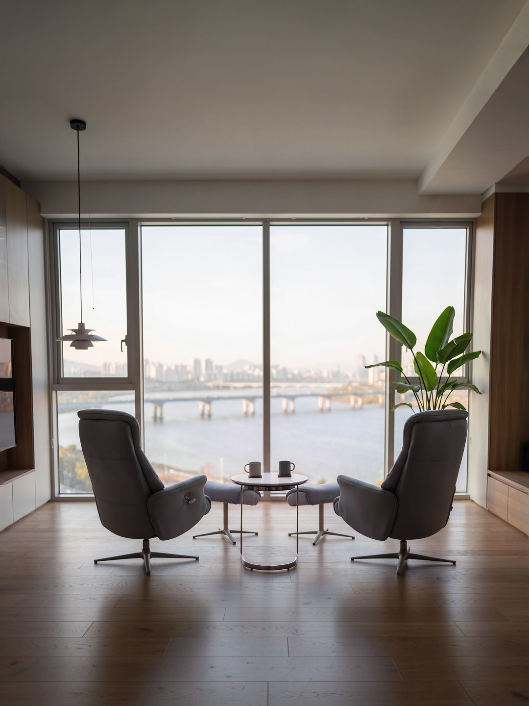 ㄷ 형태로 유연하게 이어지는 프레임이 공간에 흐름과 리듬을 더합니다. 단단하면서도 부드러운 선이 차분히 공간을 감싸며 고급스러운 무드를 완성합니다.