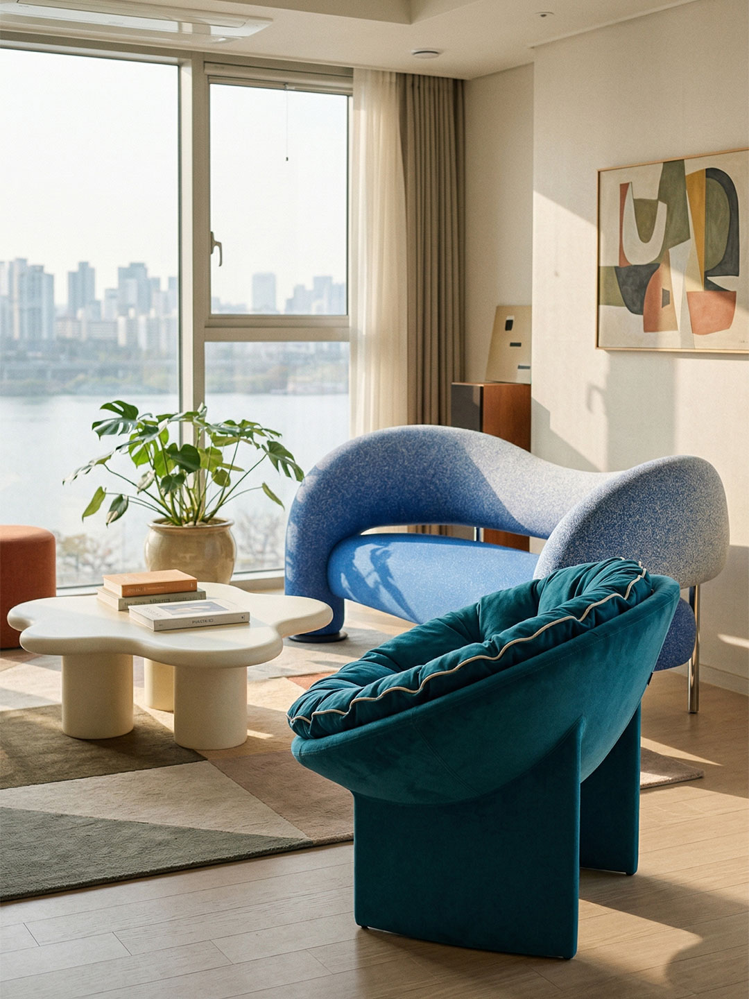 끝없이 펼쳐진 고요한 우주 한가운데 부드럽게 휘어진 고리 속에 안긴 작은 행성처럼, 새턴(SATURN) 라운지 체어는 나를 조용히 감싸 안아줍니다. 휘어진 선과 포근한 볼륨은 바쁘고 거친 하루 속에서도 내 안의 평온을 다시 찾아주는 깊은 안식처가 됩니다.