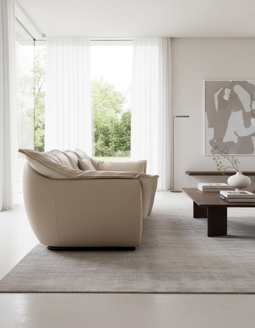 ”레브는 뒤집는 동작 하나로 생활의 장면을 바꾸는 소파입니다. 슬림한 라인과 라운드 실루엣, 그리고 양면 좌방석의 듀얼 컴포트가 미학과 기능의 균형을 완성합니다. 조용히 놓여도 공간은 새로워지고, 앉는 즉시 편안함은 확실해집니다.