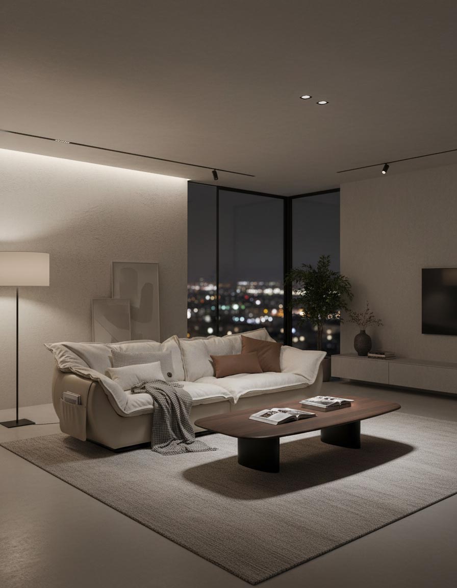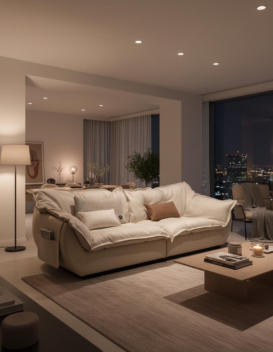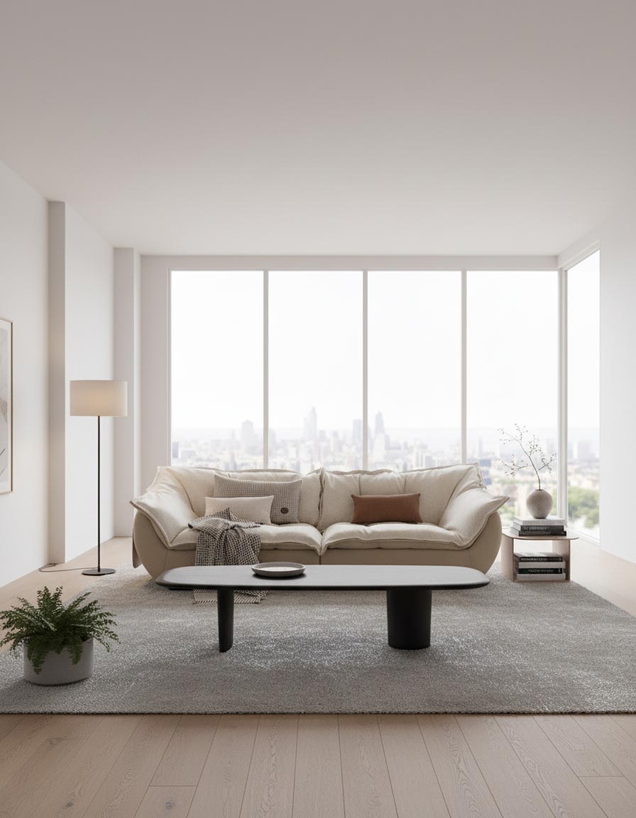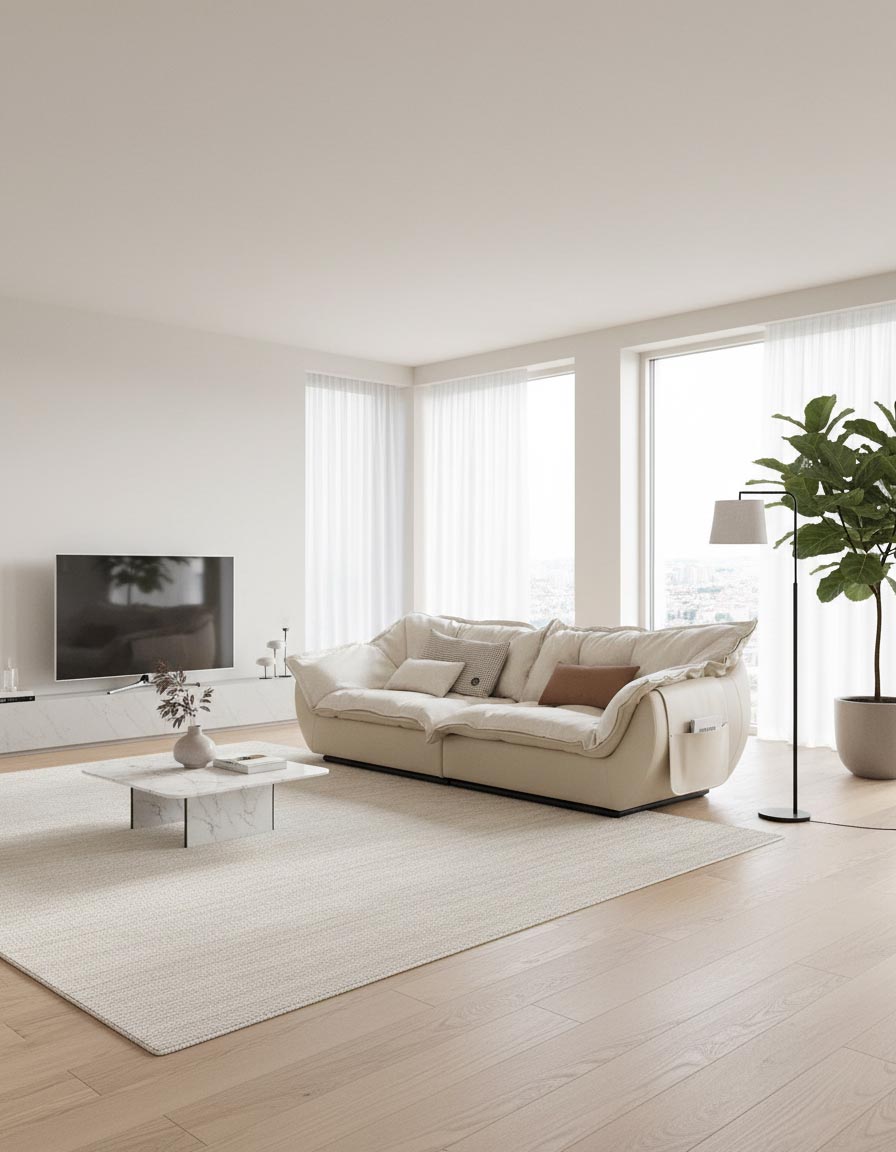 모든 모서리를 곡선으로 다듬은 라운드 실루엣. 낮고 슬림한 등 라인이 시야를 막지 않아 방이 넓어 보입니다. 과장 없이, 조용하지만 또렷한 존재감.